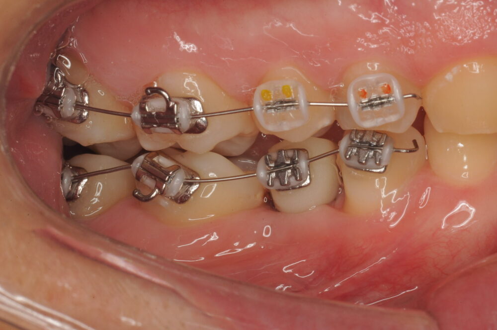 プロビジョナルレストレーション(暫間修復歯)作製のためのスキャンを行い、技工士にデジタルデザインを依頼したところ、左右対称のデザインを実現するには、一部矯正治療の追加が必要であると判断し、右上の奥歯(計8本)のみブラケット治療を行うことになりました。